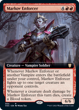 Some other standouts in this deck are Markov Enforcer (though be careful that their fight trigger doesn’t end up with them dying!) and Crossway Troublemakers for making all your vampires that bit more deadly on the attack and being a source of card draw as well (after all life is just a resource…)