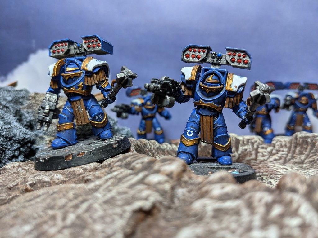 Operating as a specialist company within the 7th Chapter, the 77th boasted a large number of breacher units, most of whom were kitted out for close combat. This was due to their preferred way of war, laid down by Captain Cato: overwhelming, close combat force applied to a key area in order to break their enemy across a broader front.