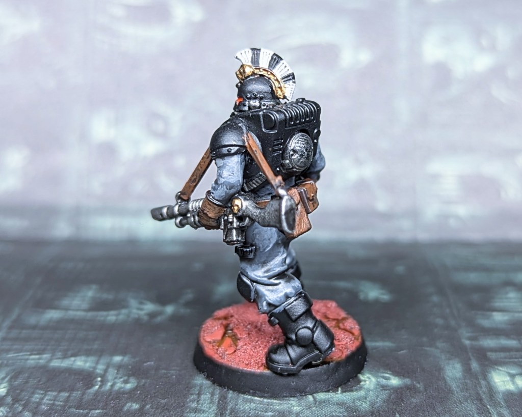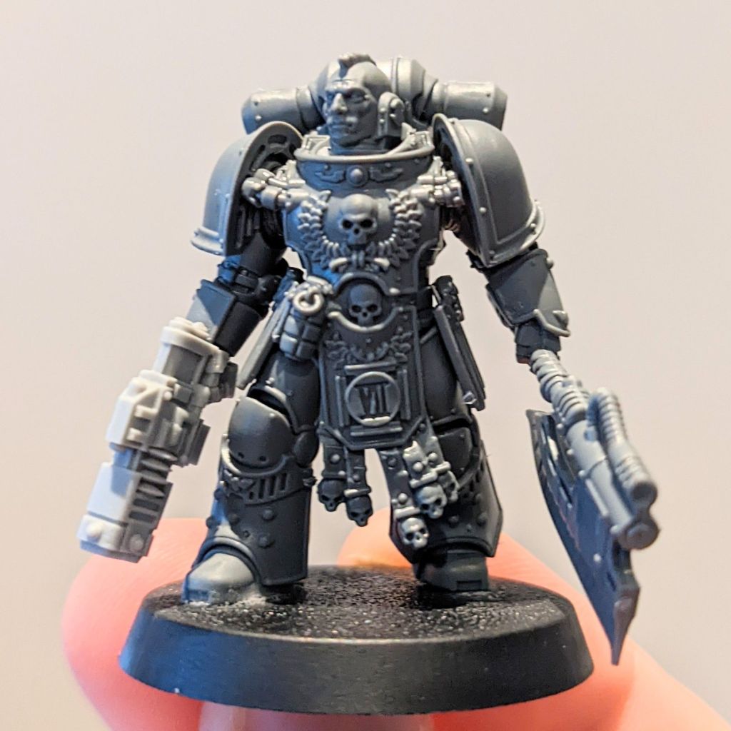 There were a couple of Imperial Fist symbols to remove but I kept the ‘VII’ on his belt as luckily the Black Consuls were from the 7th Chapter. A crested Mk. III helmet finished the model off and should help him stand out as a character. As he has the same axe as the praetor model I converted for Arrias Cordos, I thought this model could be used to represent a younger version of him, prior to taking command of the 77th Company in games where I want to use Cato Valerianus as my warlord.