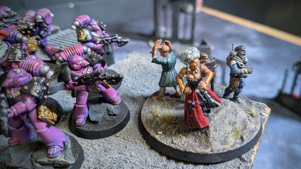 Numbering only 34 marines, the Noosemen would continue to cause havoc in Xyphos despite their size, attacking both Traitor and Loyalist forces alike. The focus of their attacks seem to have been two-fold: (1) executing planetary governors and other leadership figures; and (2) press-ganging arms, armour and recruits.