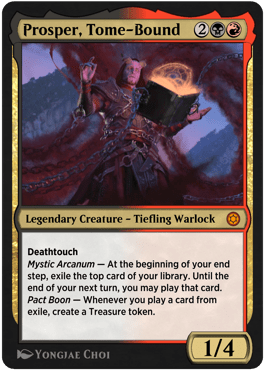 Prosper can be quite the competitive commander from what I’ve seen from some other peoples versions of the deck. This version is not so competitive but arguable way more fun. The aim of this deck is really just to exile lots of cards both from my deck and opponents deck and see what the luck of the cards brings. There’s also a few cards that are in it just for the pure chaos of it. Definitely not a deck that can be played over spelltable! No two games are the same and it really spices up a game night.