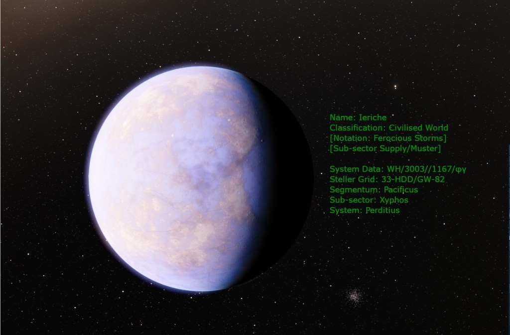 The first planet to be conquered by the traitors as they burst into the system, its ruling elite was decimated and the planet forced to submit to a new, darker compliance. Ieriche’s population has been enslaved and used by the traitors. Whilst some resistance exists, it is hounded mercilessly by jetbike reivers who revel in the slaughter.
