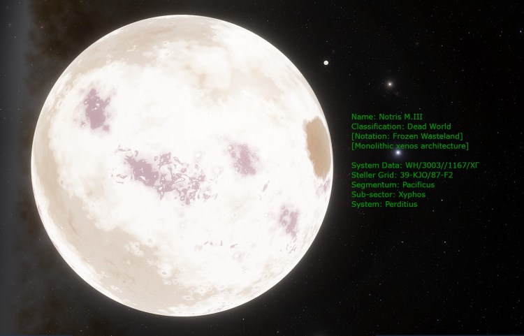 A planet wrecked by cutting storms that race round the equator, the first colonists built squat cities that burrowed into the planet’s surface. It sits on the main warp route into the sub-sector, so control of it is key for both sides.